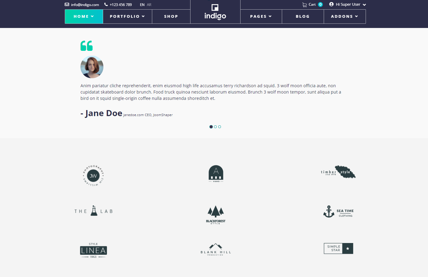 For this tutorial, we will use Indigo, a multipurpose business Joomla template based on Helix Ultimate framework and SP Page Builder. To create and design this crucial part of the webpage, all you have to do is to follow the next 5 steps and you’ll be just fine!