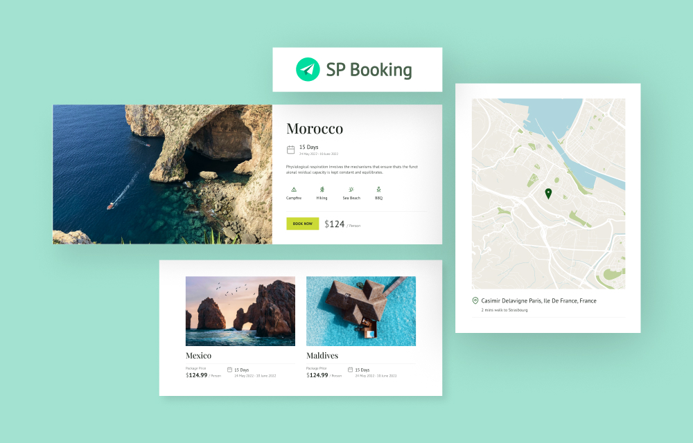 Travelin integrates the powerful SP Booking component that allows users to book their trips, manage accommodations, as well as bring all-inclusive functionalities to the tour or travel website you are dreaming of. With the SP Booking component, create a complete booking solution and detail-oriented properties for all tourism-related services.