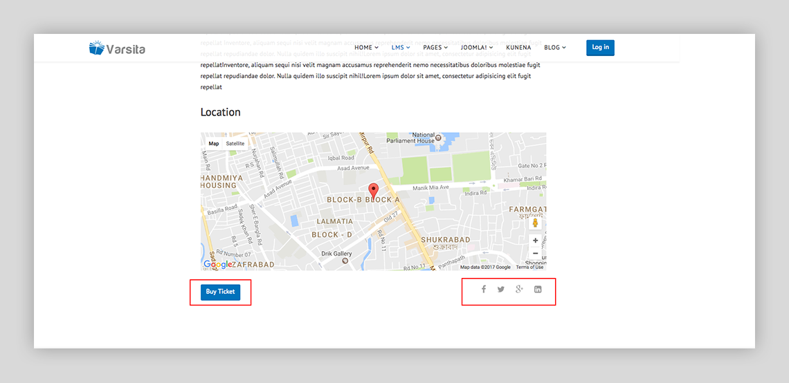 Every event page has these two new features with SP LMS. You can now add 'buy tickets' and 'social media connectivity' options on event pages. You have to add the buy ticket URL in the SP LMS component. Social media connectivity is added to ensure easy promotional purposes.
