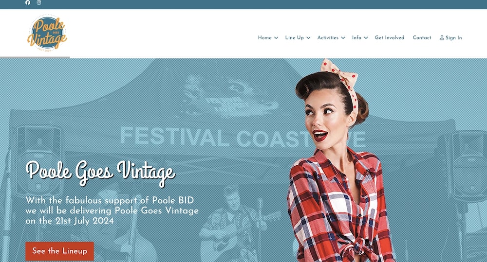 Poole Goes Vintage, renowned for its vibrant music festival in Poole, Dorset, enhances its online presence with a dynamic website powered by SP Page Builder, perfectly matching the festival’s lively vibe.