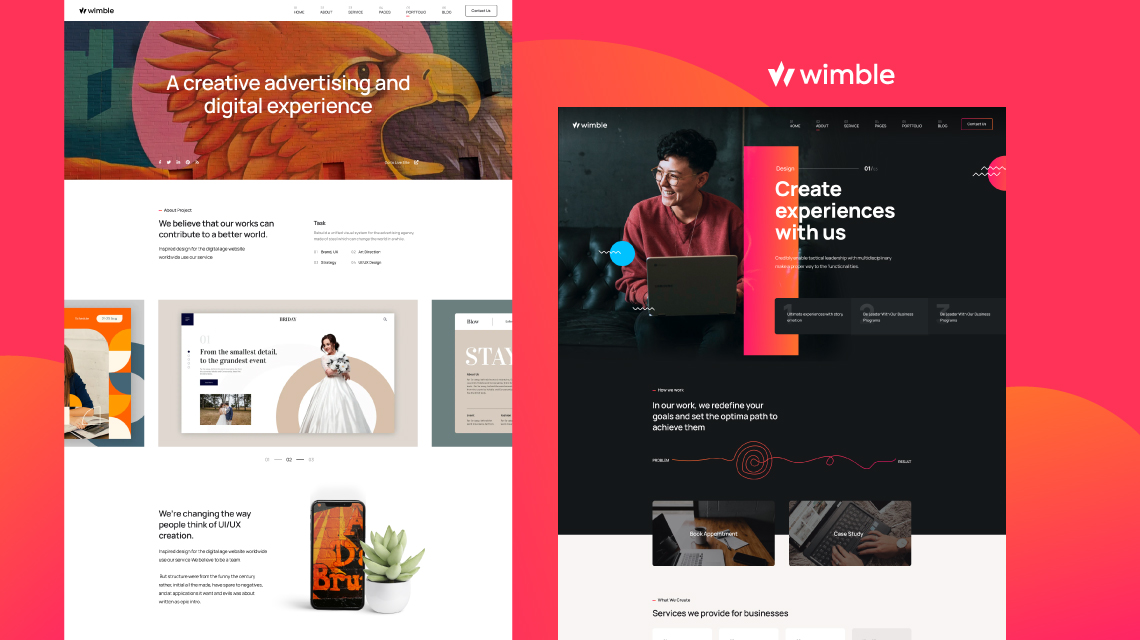 - Consultancy: Wimble lets you showcase services & stats, team sneak peek, and more on a dedicated consultancy firm home layout. Create a conversion-friendly site for any consultancy firm. Easy to customize & flexible website design to build sites easily. Showcase impressive stats and services on the homepage.