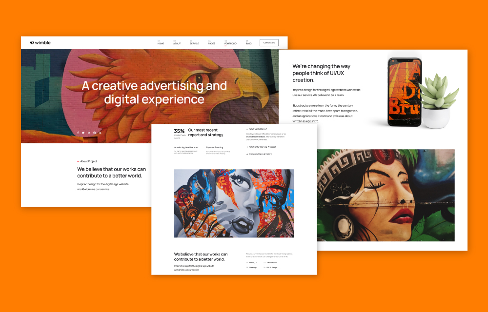 Presenting portfolios to visitors is crucial as a professional business. Having that in mind, Wimble lets you showcase portfolios with the Simple Portfolio component. Also, there are multiple portfolio variations and portfolio details pages to impress potential clients with your work. Wimble manages and presents your works in the best possible ways. You just choose the portfolio variation that suits you.