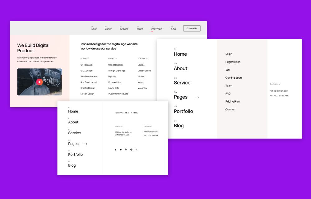 Offer out of the box as well as user-friendly navigation with an interactive mega menu and off-canvas menu. Make your site easily navigable for the visitors and add different feels with interactions and styles. Smart navigation in Wimble comes in 2 different forms.