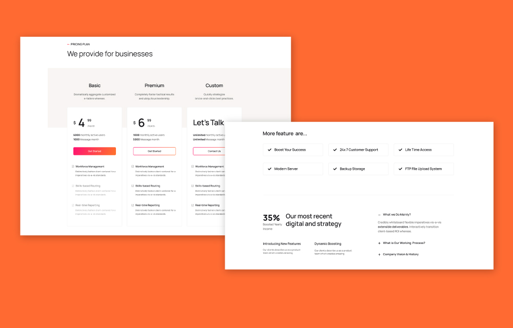 Get informative and attractive pricing tables to convert your site visitor into a client. Easily display what’s included in each plan elegantly and effectively along with the price and persuasive CTAs. Have a card-style layout with clear pricing and service details. Let potential clients get a quick overview of your paid offerings.