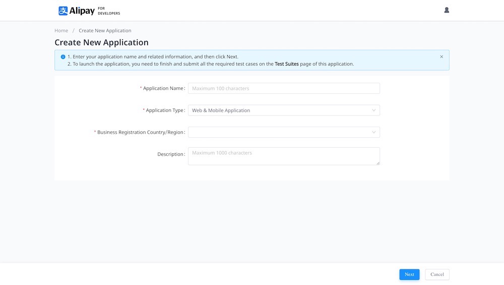How to Create an Application to Start With the Alipay Payment Gateway Integration