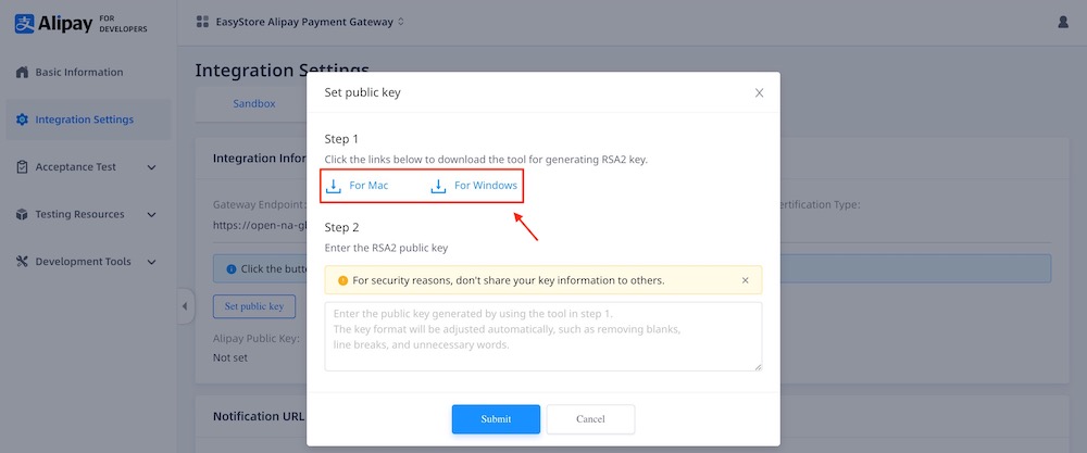 How to Obtain Private Key and Alipay Public Key for Sandbox/Production Mode