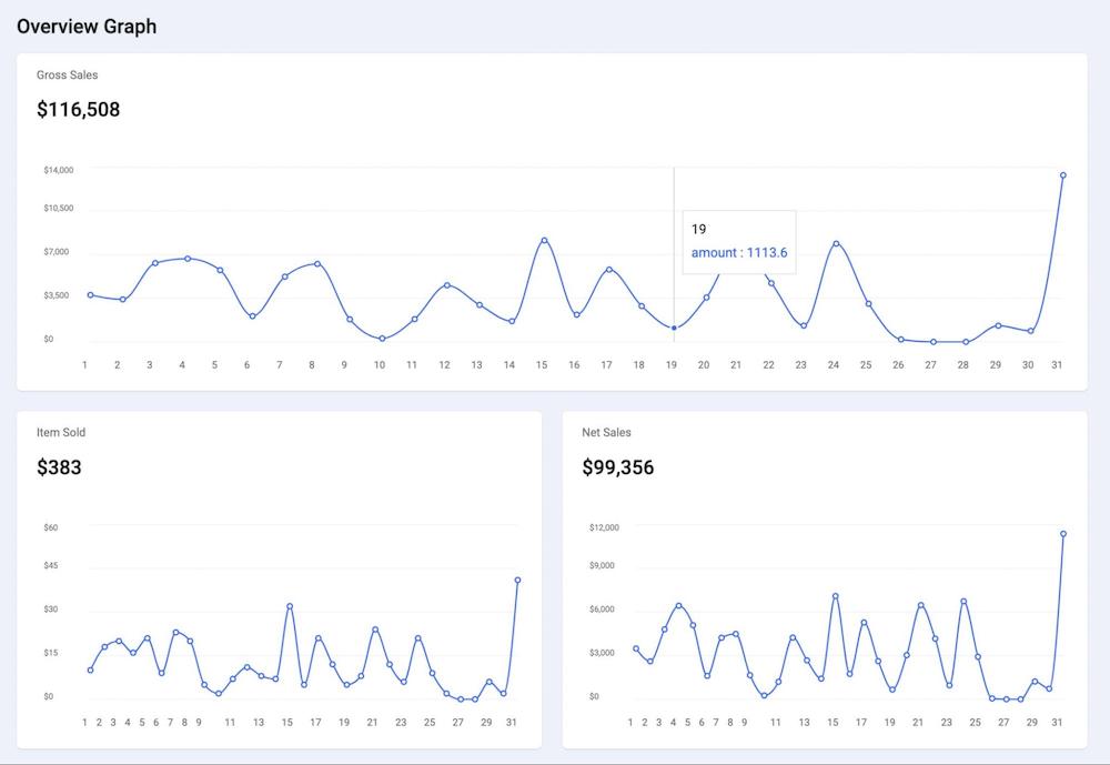 Gross Sales: A line graph showing the trend of gross sales over the selected date range.