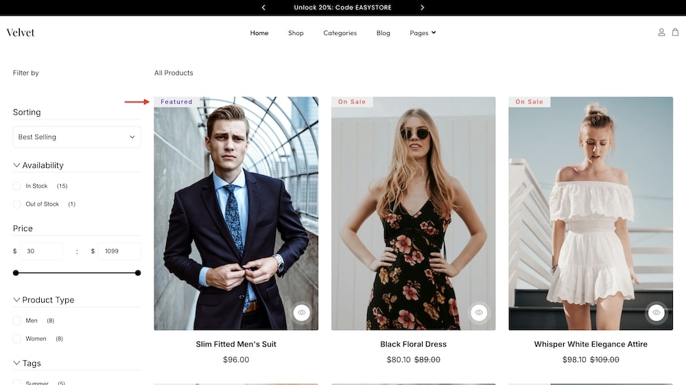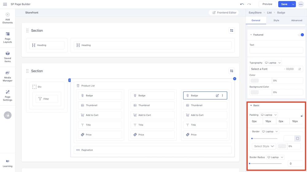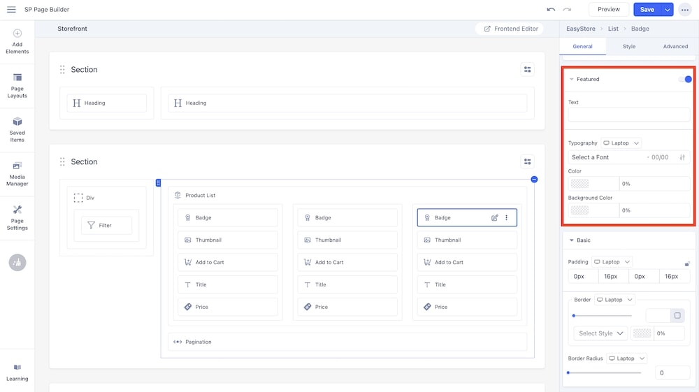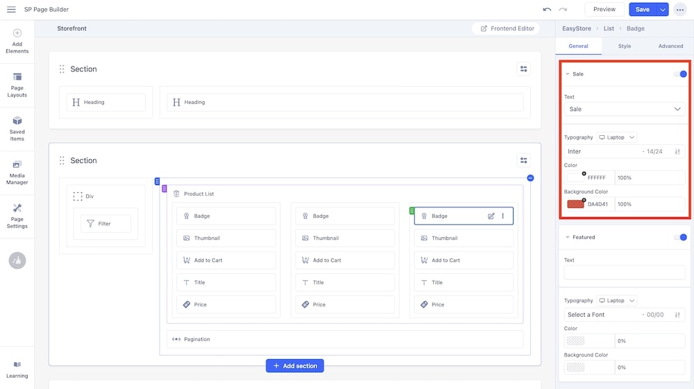 The Badge addon is a versatile addon available for your EasyStore Storefront page. It allows you to highlight products with customizable badges, such as "On Sale" or "Featured." You can adjust the badge typography, style, and appearance to align with your store's branding. This addon is essential for eCommerce shops as it draws attention to special products, effectively promotes offers, and enhances your product listings' visual appeal.