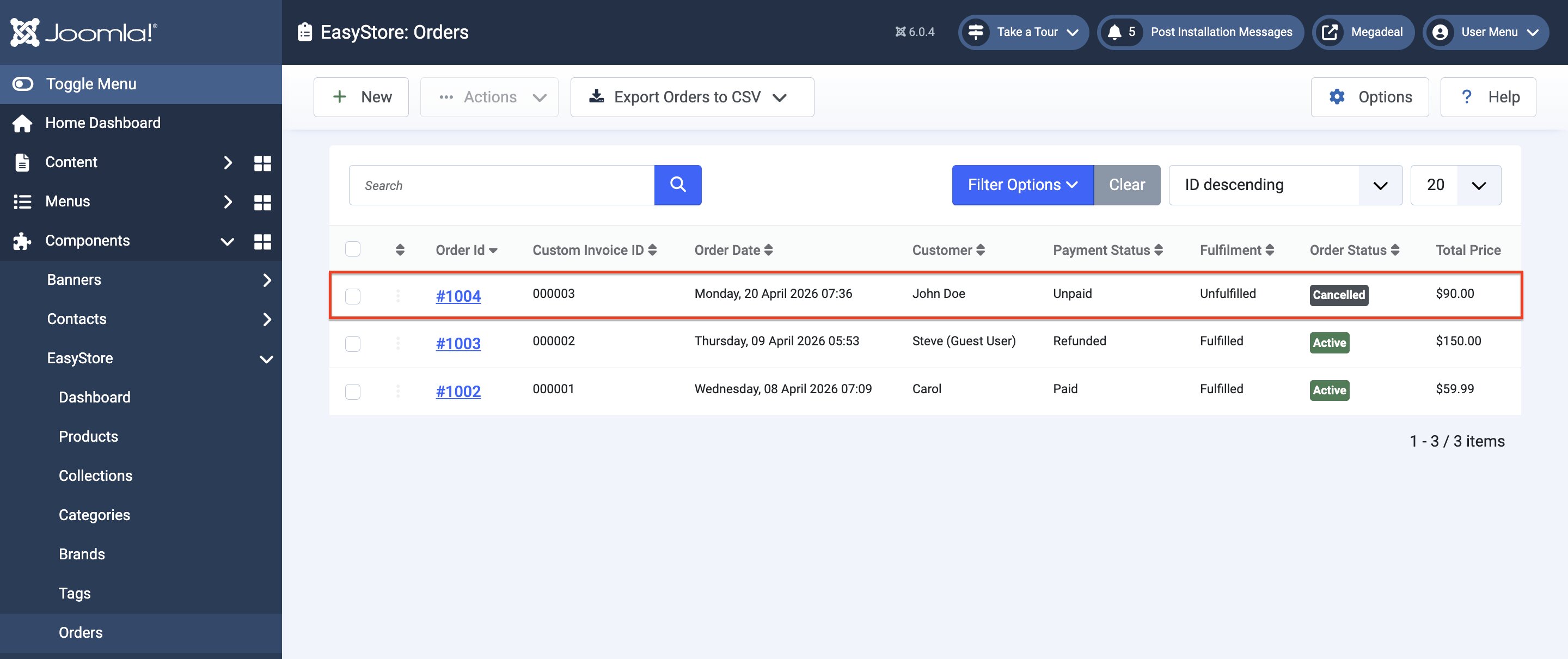 Go to Components > EasyStore > Orders and click on the “Order ID” of that specific order.