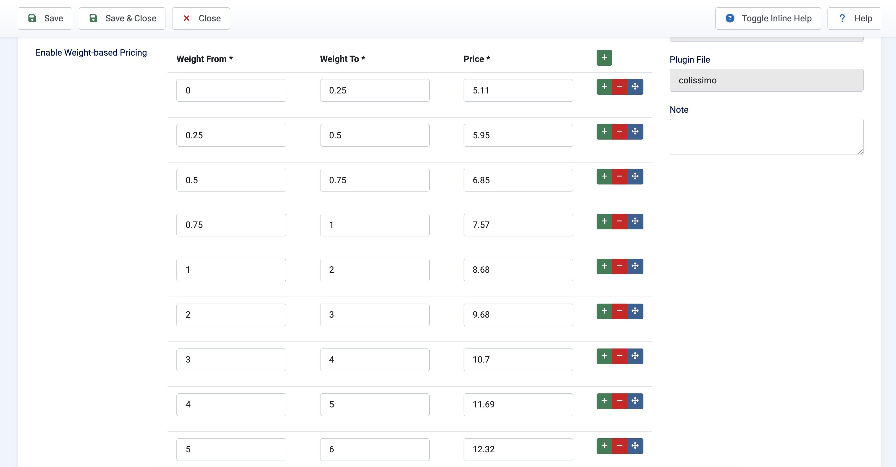 You must assign a weight to each product individually for Colissimo to calculate shipping charges accurately. Any product weight that exceeds the defined chart limits will not be included in the shipping cost calculation.