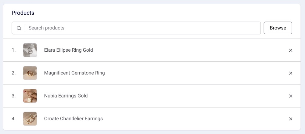 Use the Search Products bar to locate items you'd like to add to the collection.