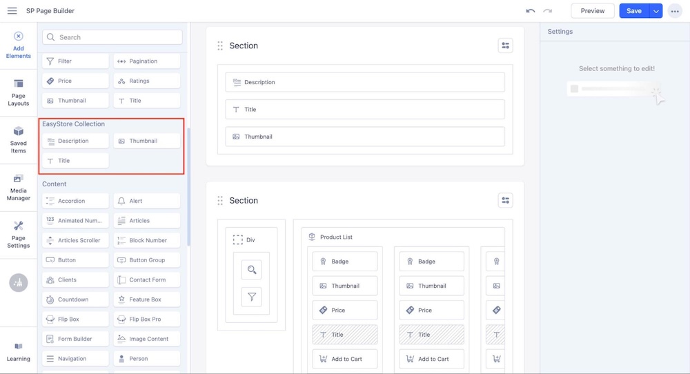SP Page Builder’s integration with EasyStore enables you to design individual Collection pages with custom layouts.