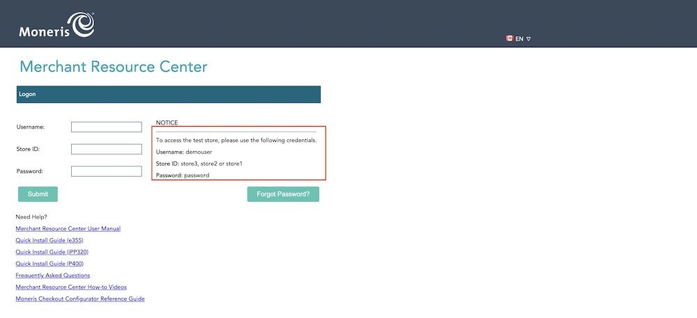 Login to your account by using the provided credentials. You will also find your Store ID here for testing purposes.
