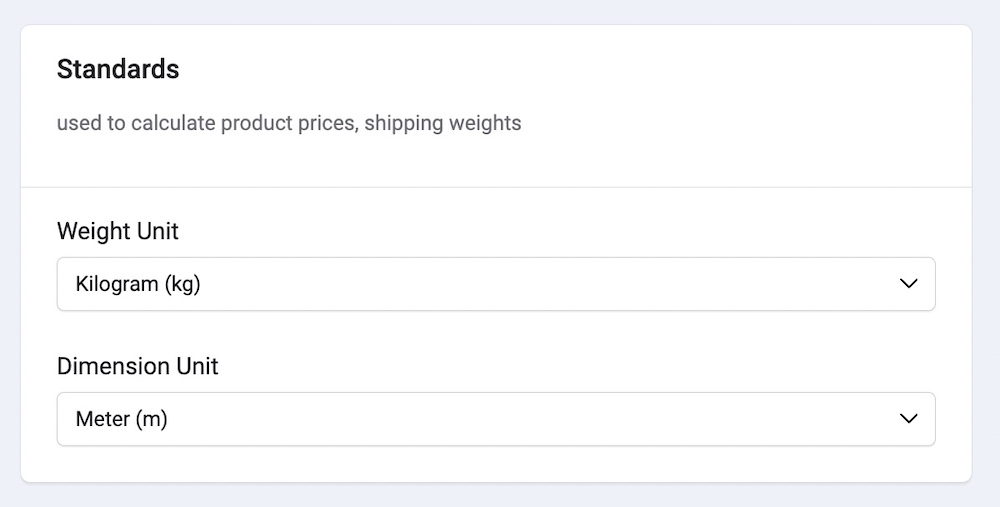Weight Unit: Here, you can choose the unit of measurement for product weights from the dropdown, such as Kilograms (KG) or Pounds (LB).