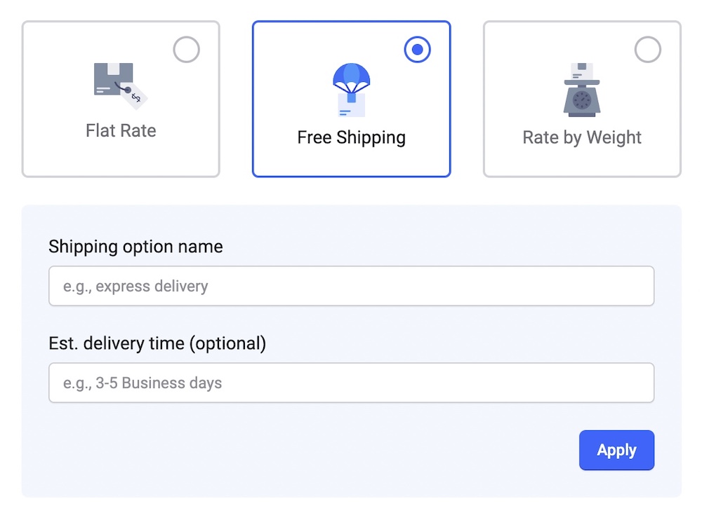 Est. Delivery Time (Optional): Optionally, provide an estimated delivery time for this shipping option.