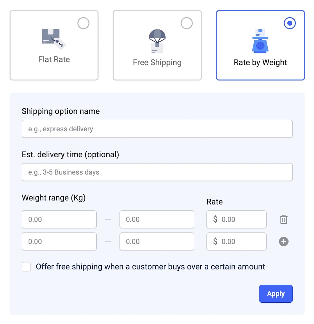 Click on Apply to save your rate-by-weight shipping configuration.
