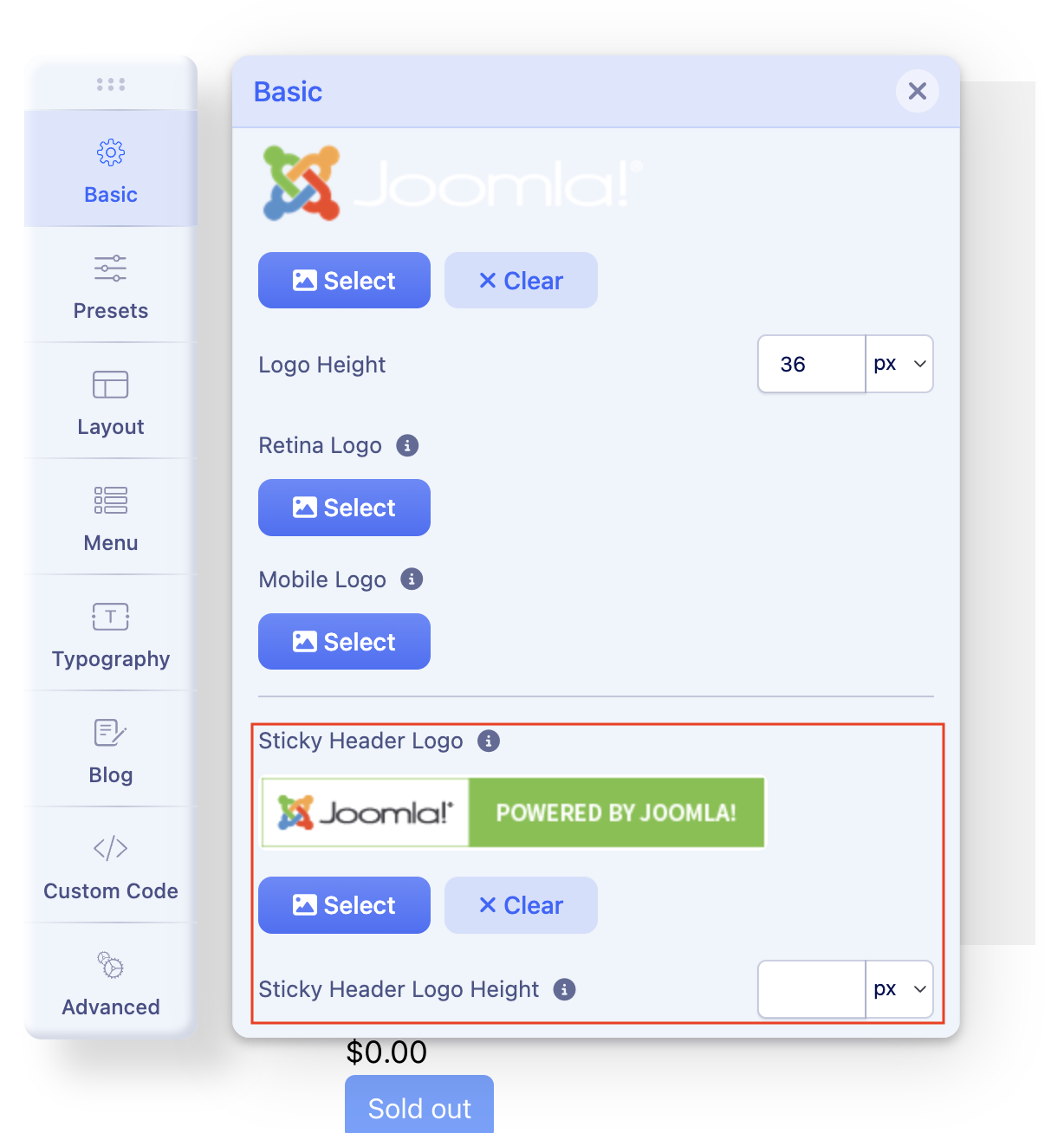Sticky Header Logo Height - This option lets you control the height of the logo displayed in the sticky header. Adjusting the logo height helps maintain proper spacing and ensures the sticky header remains visually balanced and unobtrusive while users scroll the page.