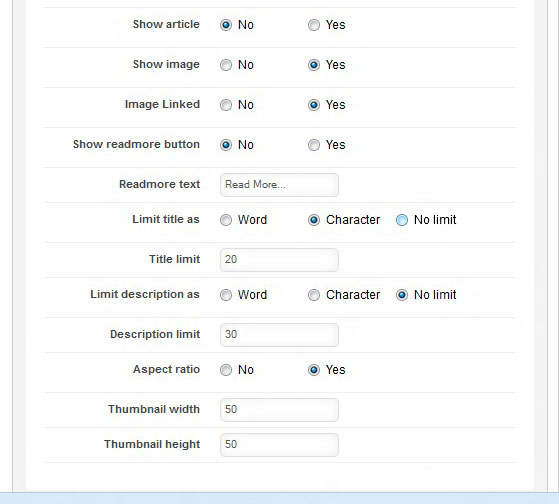 No of Slide,Show article,Show image setting have to fix.