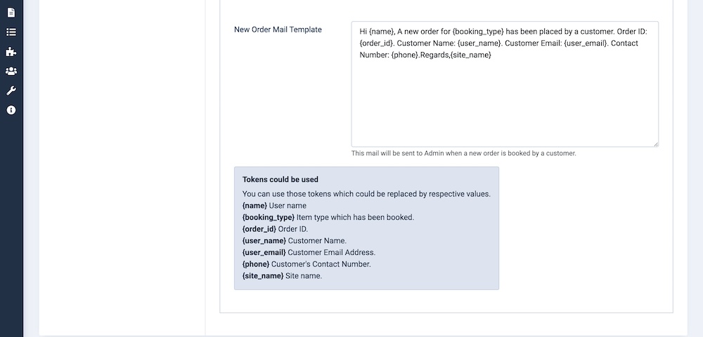 New Order Mail Template: Enter the mail that will be sent to the Admin when a new order is booked by a customer.