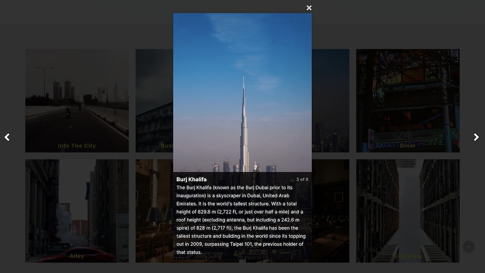 This allows you to provide more context or descriptions for each image, enhancing the user experience on your gallery. To see your changes, preview the frontend again and click on the image within the album. You will notice the updated title and description displayed with the image.
