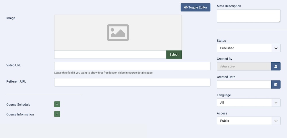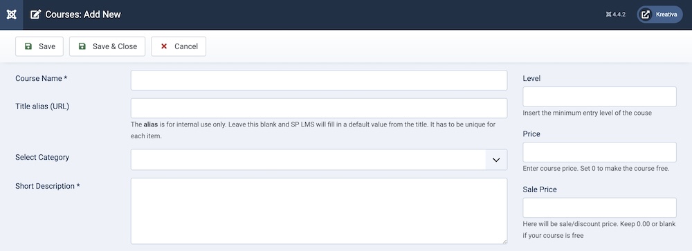 Price: Define the regular price of a course in this field, leaving it blank will make the course a free one.