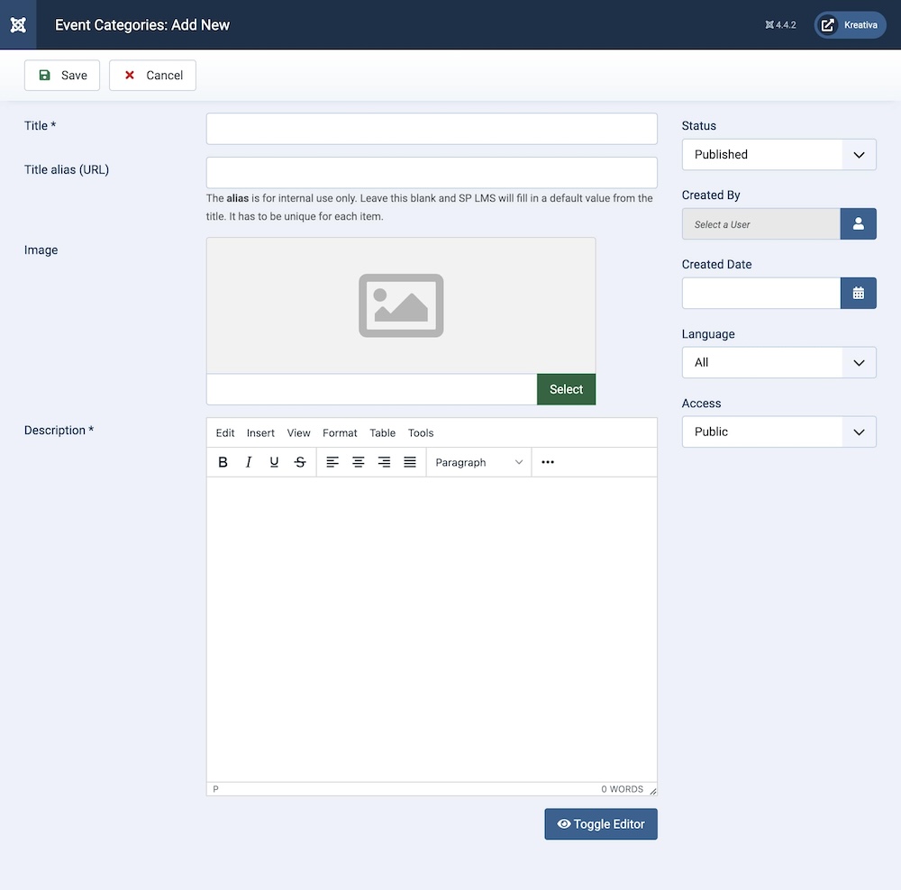 Created By: The person who creates the category will be automatically assigned to this field once the lesson is created, but an admin (Super User) can change the user at any time.
