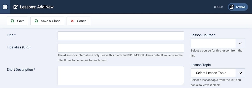 Title Alias (URL): An alias is a URL for the lesson, you don't need to put in any data unless you want to in this field, the alias will automatically be generated after the lesson name once a lesson is created.