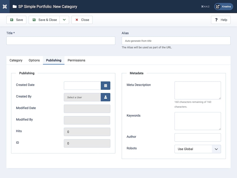 Alias: You can either automatically generate an alias from the title or manually enter one yourself. If you want the alias to be auto-generated, leave the field blank.
