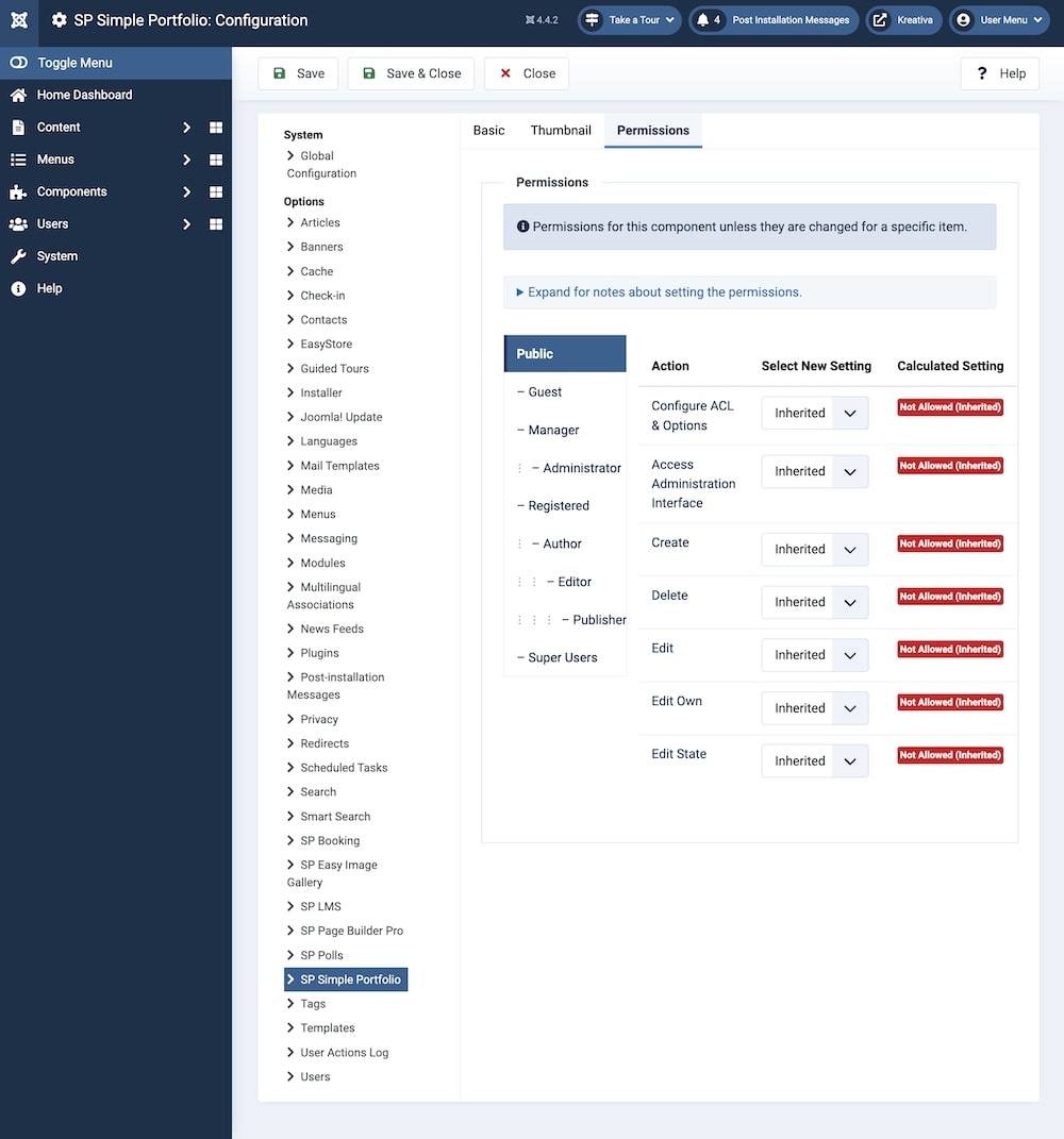 You can control the global permissions for the category. This determines who can use or edit the category. You can choose between Public, Guest, Manager, Administrator, Registered, Author, Editor, Publisher, and Super Users.