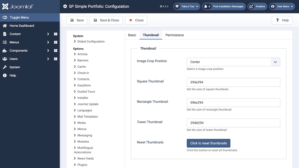Rectangle Thumbnail: Set the size of the rectangle thumbnail in this field. The default dimensions are 596x294.