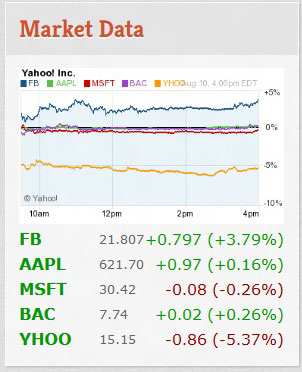 SP Stock is a joomla Module to display Stock Information of companies into your website. Here we will display Stock Information of companies like Google,Yahoo,Microsoft,Apple and Bank of America.