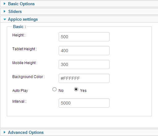 This awesome slideshow settings provide you to select the height, background color, auto pay or Interval.