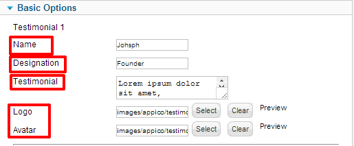 Customizing this awesome module is to easy. Just select the Name, Designation, testimonial from basic options. There is also option for logo and avatar.