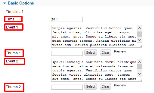Customizing this awesome module is to easy. Just select the time and event from basic settings. There is also option for the thumb images for the timeline.
