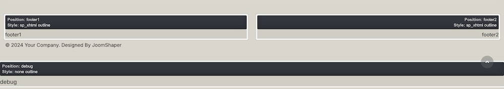 At the bottom of the template, i.e., the footer position, two SP Page Builder modules (footer1, footer2) have been used.