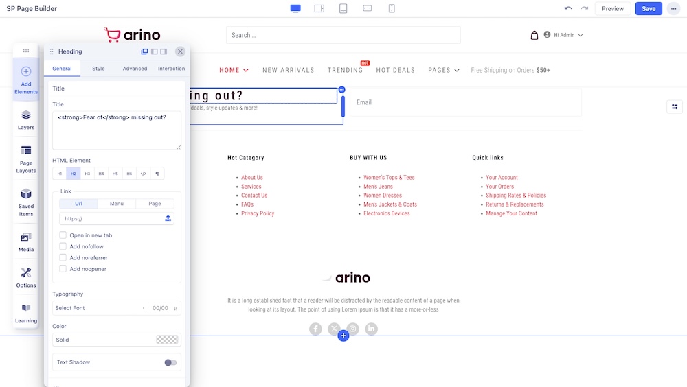 Bottom and Footer | Arino - Documentation | JoomShaper