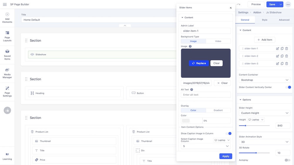 There are 5 different home variations to showcase your eCommerce store. All were created using the SP Page Builder Pro component. You can decide whether to display products on the slider or have deals in the hero section. Choose a different combination of product and content display option from these home variations: