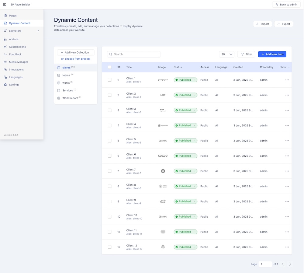 You can manage Dynamic Content directly from SP Page Builder’s dashboard: