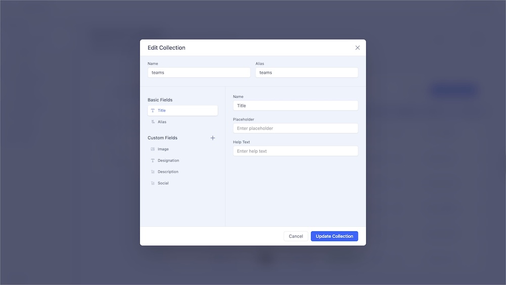 To add new items to the existing Collections, click on the “+ Add New Item” button.