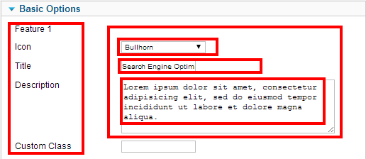 From Basic option we fixed the Icon, Title, description & the Custom class. We do the same to the others like Feature 2 & Feature 3 and Feature 4.