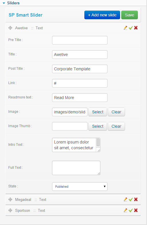 This awesome sideshow settings provide you to select the title, post title, readmore text and intro text. From here users will also able to select the image source. Here is another option for the thumb image also.