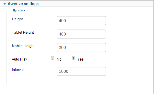 This awesome slideshow settings provide you to select the height, background color, auto play or Interval.
