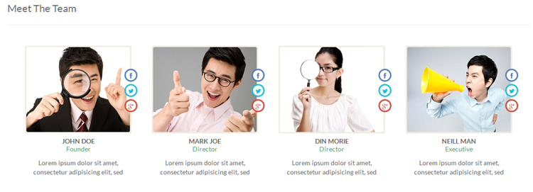 From Basic option we fixed the Image, Name, Designation, Facebook, Twitter, Google Plus, Pinterest url. We do the same to the others, like Team 2, Team 3 & team4. Here is also more option available for select more social url.