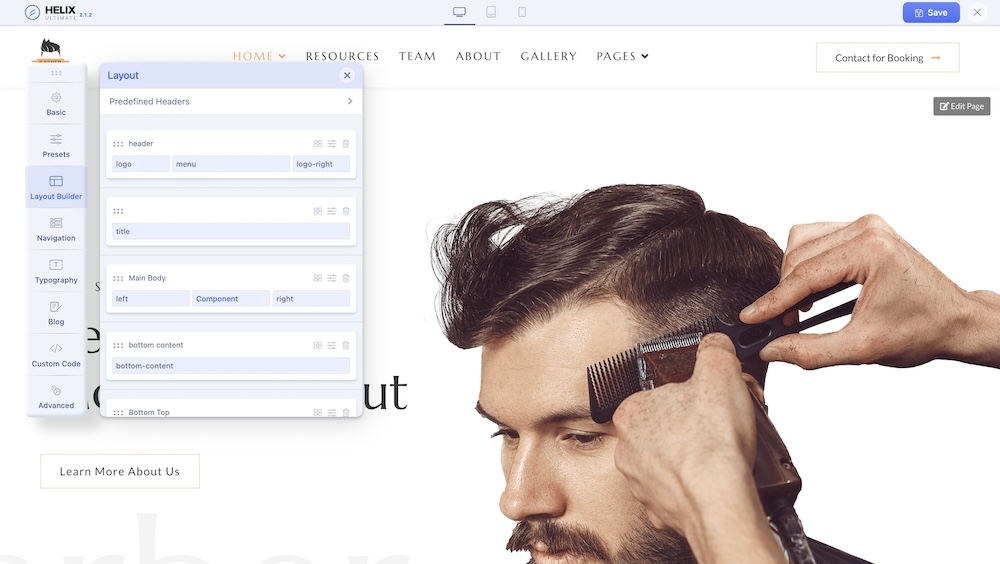 The following screenshot highlights the main layout module positions that we used in the current template. By using Layout Builder in Helix Ultimate, you're able to move positions or even change their sizes in the grid (based on Bootstrap 4). Our in-built layout builder from template settings provides you the opportunity to add new positions, columns, and rows wherever you need and to move the elements as much as you want. You can find more information & tips inside the Helix Ultimate Manual.