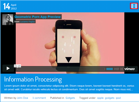 In k2 extra field we select the post type by video to publish the marked video icon.