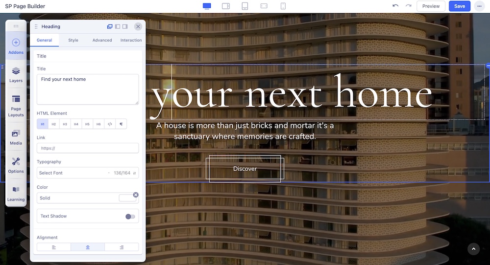 Residential: Cultivate curiosity in your users, encouraging them to keep scrolling by incorporating an enticing hero section and captivating image sliders. Provide glimpses of your services and more with engaging design elements.