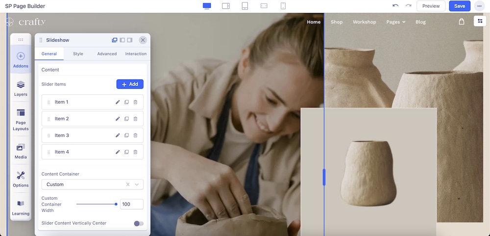 Crafty comes with a visually soothing homepage with a sense of serenity. The gentle yet calming color palette and layout are poised to captivate your visitors and leave an ever-lasting impression. Ensure a compelling introduction with an amazing hero section that comes with an auto slider and a compact space to showcase top-rated products. Engage users with multiple scroll effects throughout the page and prominently display your workshops, products, and more.
