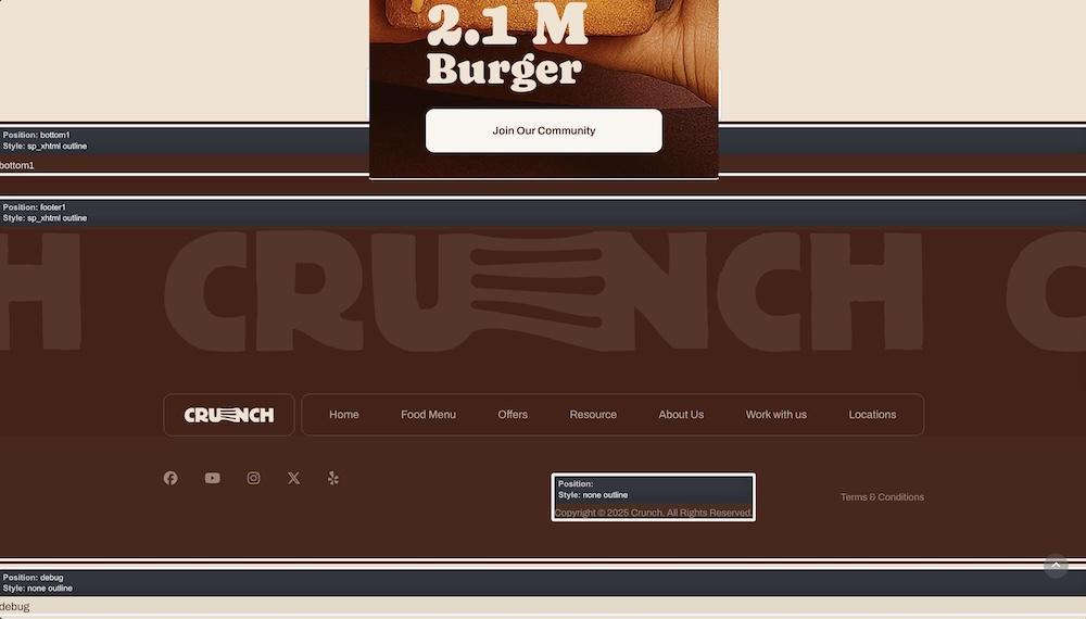 At the bottom of the template (that is footer position), we used one SP Page Builder module (footer1)