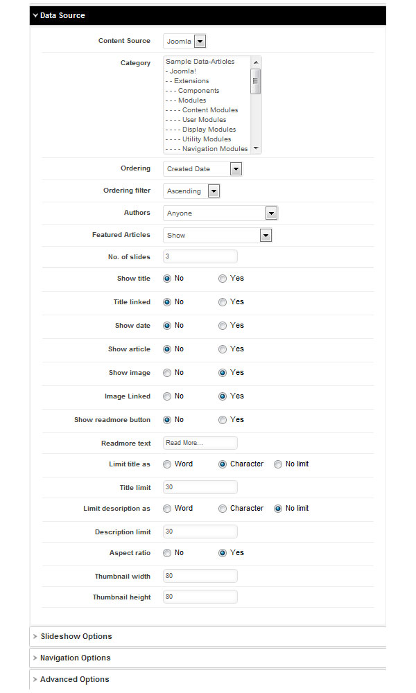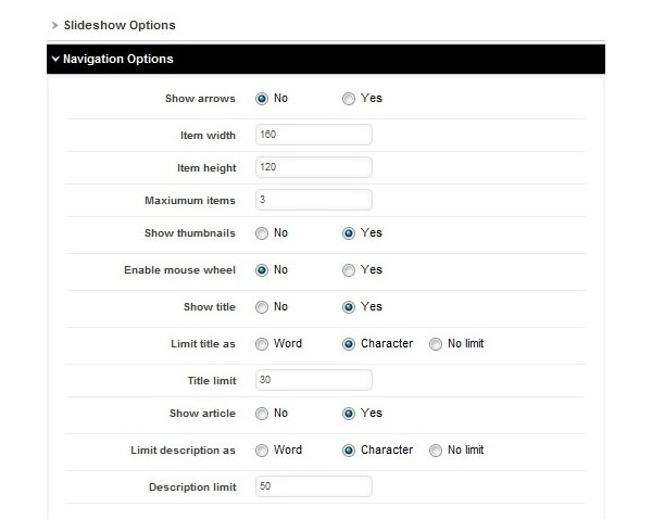 You can see the settings of width and height for this slideshow in the screenshot below.