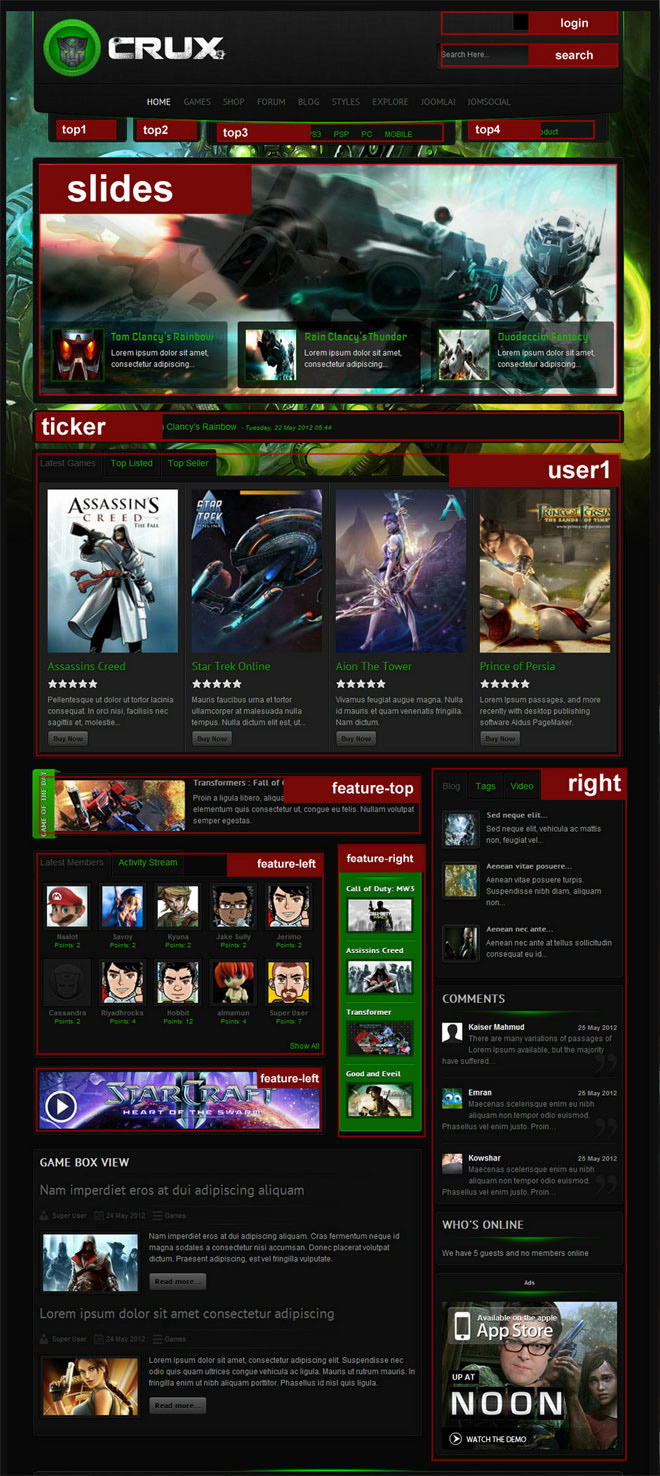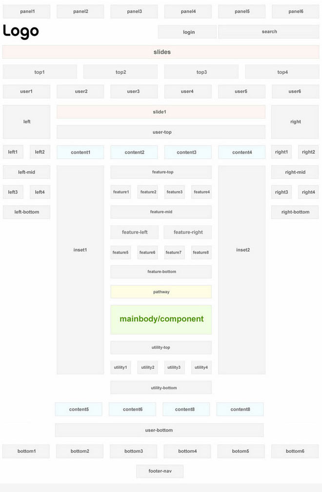 The screenshot below highlights the module positions available in CRUX template.